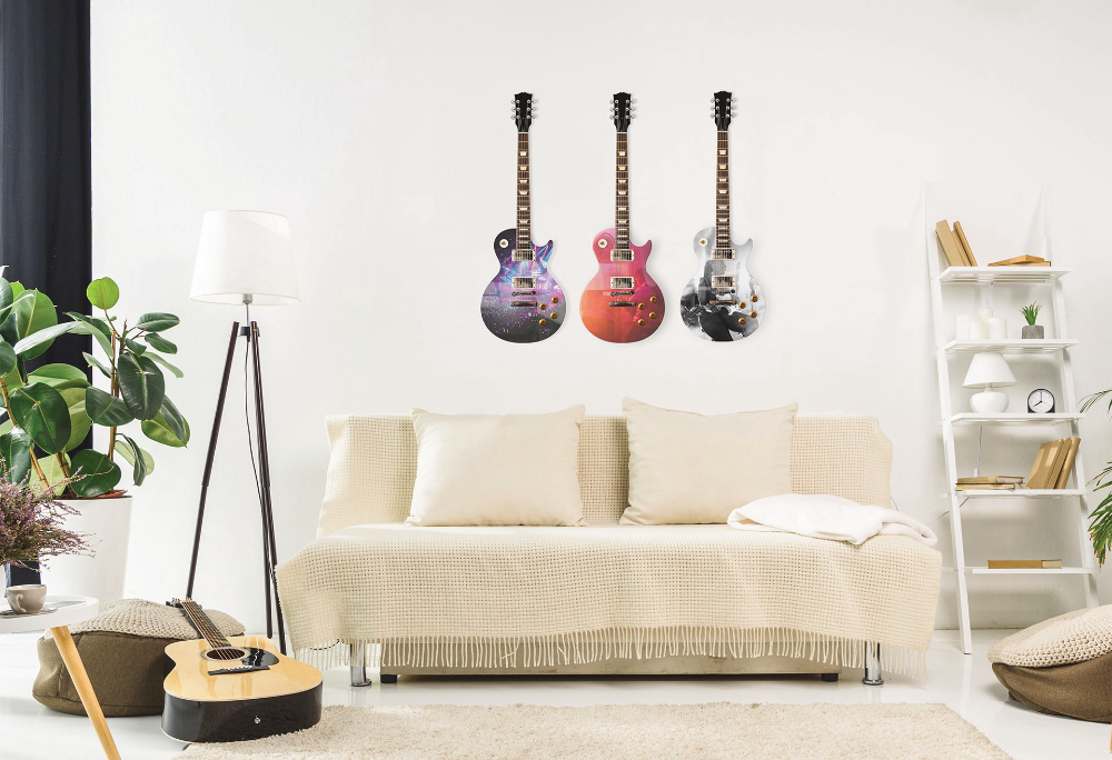 Unleash your love for music with a custom guitar print. We print your photo on the acrylic guitar. Dimension are 38 inches x 13 inches. They come ready with a Back mount frame.