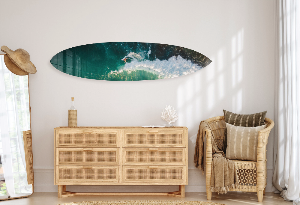 We print your photo on an acrylic surfboard for your wall. Dimension are 76 inches x 18 inches printed with high-definition printing printers on a Premium polished, 99.9% pure acrylic